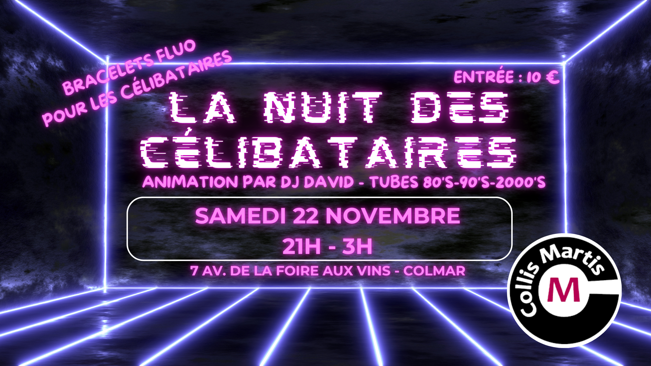 #Colmar #SoiréeFestive #NuitDesCélibataires #Célibataires #CollisMartis #SortirÀColmar #Ambiance80s #DJMarc #SoiréeColmar #Fête