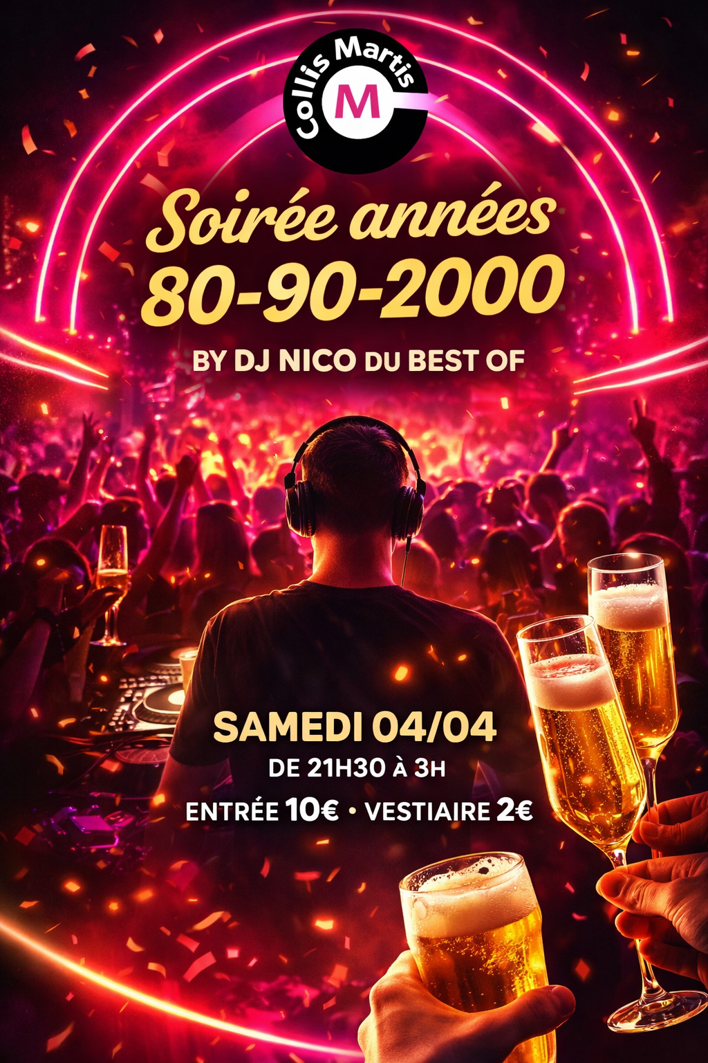 Le Collis Martis vous donne rendez-vous pour une soirée qui s’annonce mémorable ✨ Préparez-vous à vibrer au son de l’Electro, Disco et House, dans une ambiance lounge et festive où le
